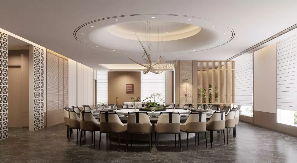 • 孔雀翎羽:将孔雀眼状纹样进行几何化解构,应用于包间大门,象征吉祥与尊贵